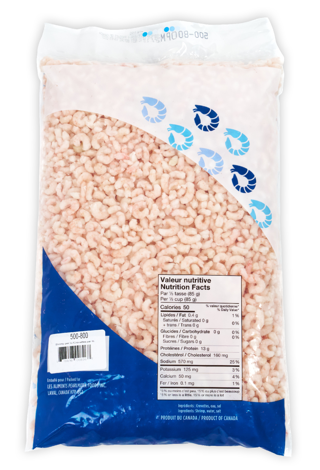 Canada | Crevettes nordiques surgelées séparément, MSC, 500 - 800 par lb | 4 x 5 lb |